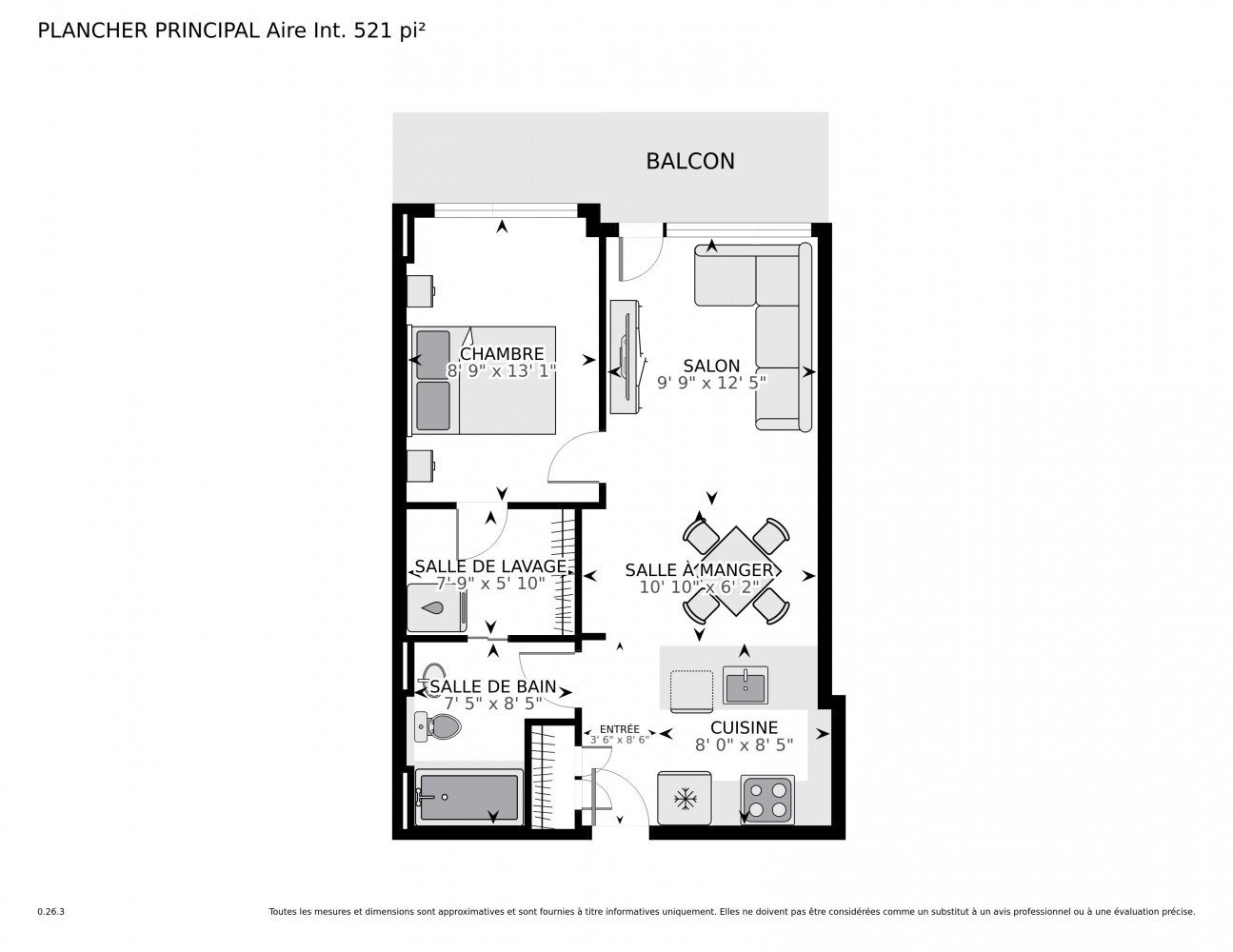 | Pièces | NIVEAU | DIMENSIONS | REVÊTEMENT DE SOL | Informations additionnelles |